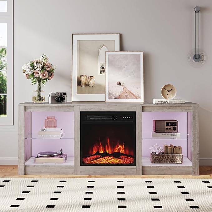 - ✅ Integrated 18-Inch Fireplace Insert – Warmth Meets Ambiance Features a built-in 18" electric fireplace insert with lifelike flames and adjustable heating. Delivers cozy warmth and visual charm, perfect for elevating your living room comfort and atmosphere year-round.