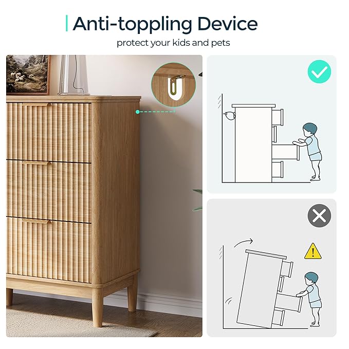 - Safety-Certified Design – Built for peace of mind, this tall dresser meets strict ASTM 2057-2023 safety standards and features rounded edges, wide metal handles, and anti-tip device to prioritize child safety
