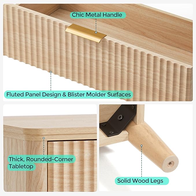 - Durable Craftsmanship – Made from high-quality material with a fluted panel crafted using blister molding technology and a melamine veneer tabletop for a refined texture, this chest of drawers offers durability, water resistance, and easy maintenance, while its solid wood legs and sturdy frame ensure lasting stability and support
