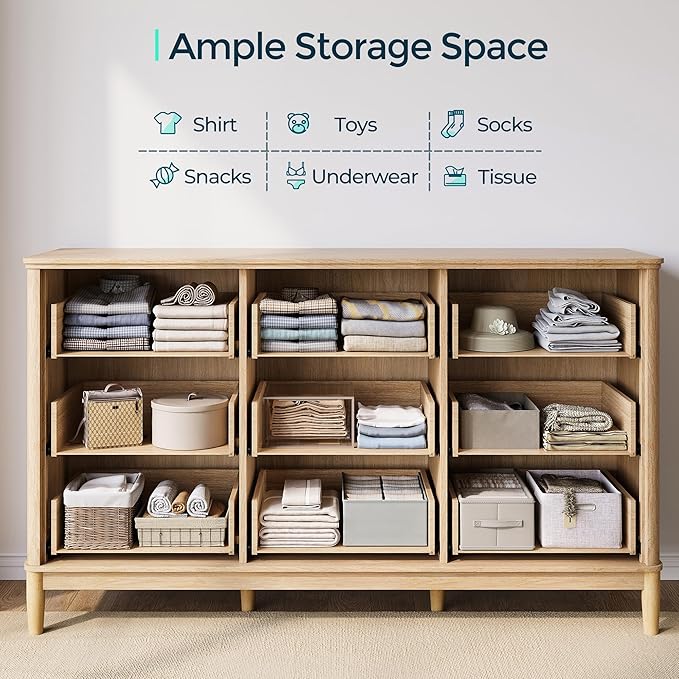 - Ample Storage Space – Transform your space with the fluted dresser, featuring nine deep drawers for ample clothing, bedding, or cosmetic storage and a spacious wooden tabletop perfect for elegantly displaying photo frames, plants, or décor—keeping you organized and stylish