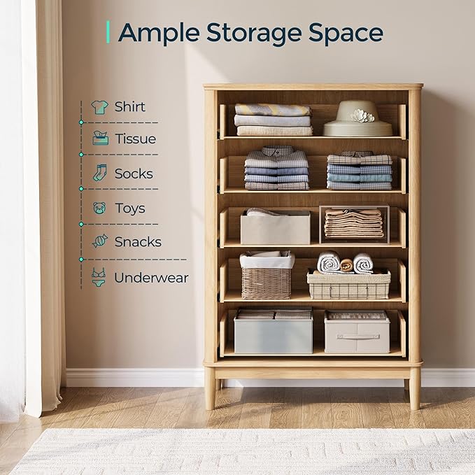 - Ample Storage Space – Transform your space with the fluted dresser, featuring five deep drawers for ample clothing, bedding, or cosmetic storage and a spacious wooden tabletop perfect for elegantly displaying photo frames, plants, or décor—keeping you organized and stylish