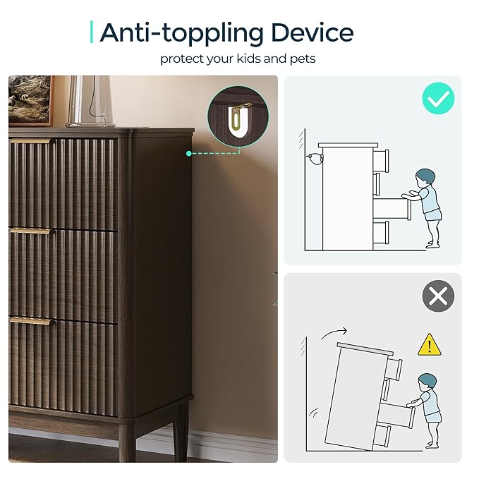 - Safety-Certified Design – Built for peace of mind, this tall dresser meets strict ASTM 2057-2023 safety standards and features rounded edges, wide metal handles, and anti-tip device to prioritize child safety