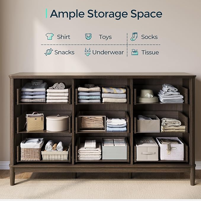 - Ample Storage Space – Transform your space with the fluted dresser, featuring nine deep drawers for ample clothing, bedding, or cosmetic storage and a spacious wooden tabletop perfect for elegantly displaying photo frames, plants, or décor—keeping you organized and stylish