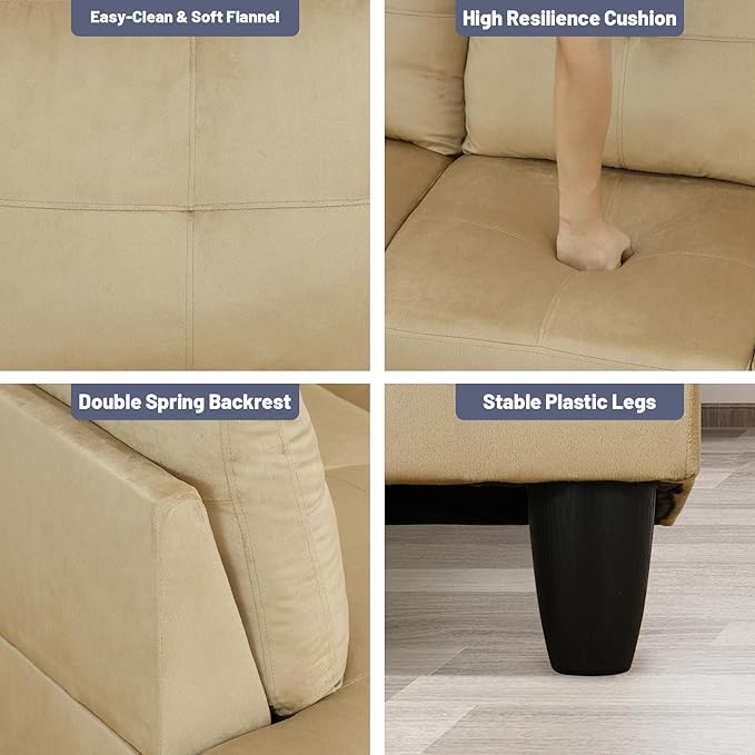 - Ergonomic Recline: Lyngins l shape sectional couch's curved back tilts slightly angled backrest (110–115°) supports the natural curve of your spine, perfect for box-set marathons, page-turning or power naps without the slump.