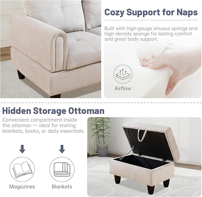 - Included Components : Sofa + Chaise + Storage Ottoman