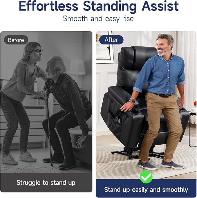 - 【Power Lift Recliner for Seniors – Easy Standing Assist】Equipped with a smooth and quiet electric lift mechanism, this power lift recliner chair helps seniors and people with limited mobility stand up effortlessly without straining knees or back. Ideal for seniors and designed for daily convenience.