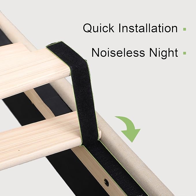 - Zero Noise - Equipped with velcro and EVA mute bars to avoid friction between wooden slats and metal frames, effectively eliminating noise. No squeak and mattresses won't slip away. Providing you with a quiet sleeping night.
