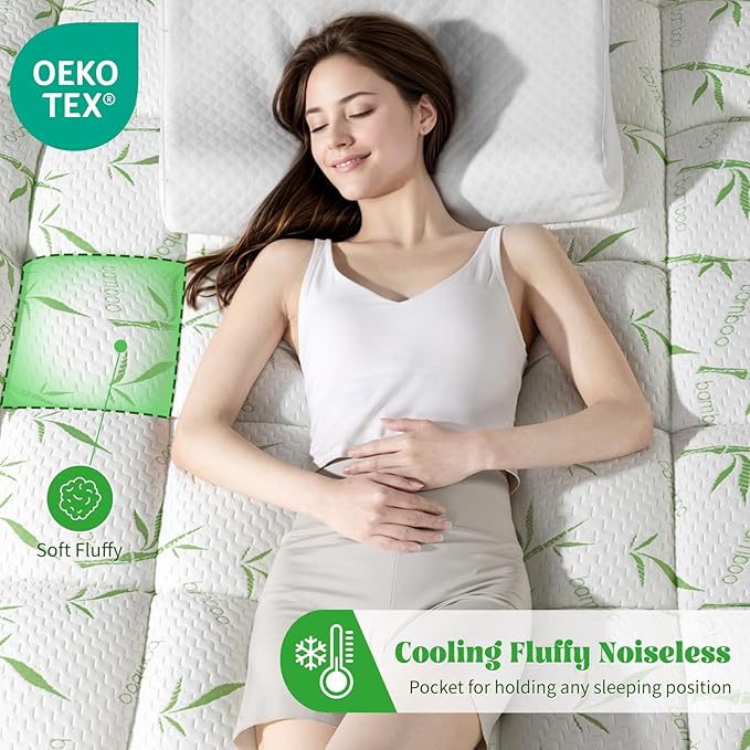 - 【BREATHABLE COOLNESS ,INDULGE IN DEEP SLEEP】LIANLAM's mattress topper is made of 40% smooth, silky, soft, breathable Bambu_Viscose fabric, which is extremely breathable and distributes heat evenly.As a result, it prevents the discomfort of heat retention compared to memory foam or traditional mattress pads, so you wake up sweat-free and stay cool all night long.