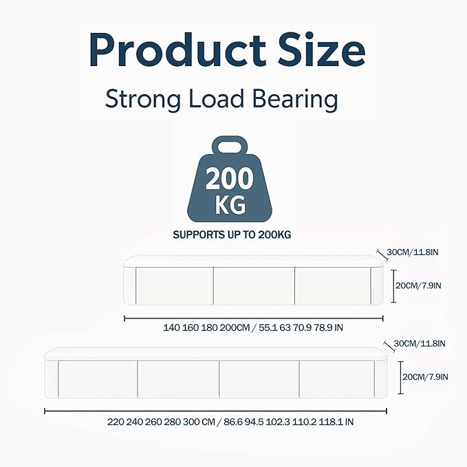 - 【Easy Installation】 This floating TV shelf comes pre-assembled and is ready to be installed right out of the box. It is suitable for various wall types, including brick, concrete, tile, stone, and wood (not compatible with hollow or drywall). With a maximum weight capacity of 100 kg, it offers reliable support as a floating TV stand wall mounted unit.