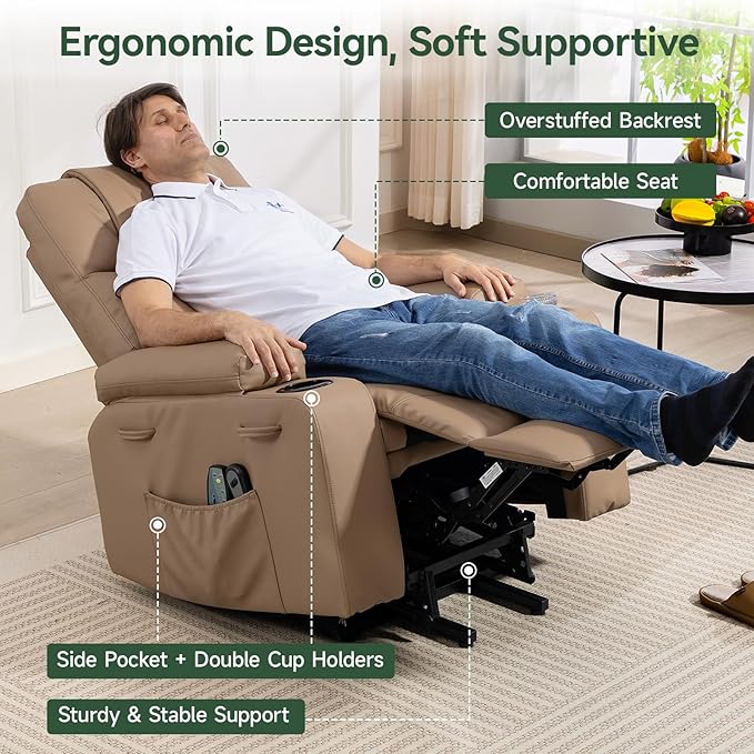 - 【Sturdy Lift Chair – Easy to Assemble & Gift-Ready】Crafted with a reinforced steel frame and high-density foam cushions, this power lift recliner supports up to 350 lbs for reliable, long-lasting comfort. Quick, tool-free assembly means you’ll be enjoying it in no time. It also makes a thoughtful gift for Mother’s Day, Father’s Day, Thanksgiving, or Christmas—a meaningful way to show your love and care for aging parents or loved ones.