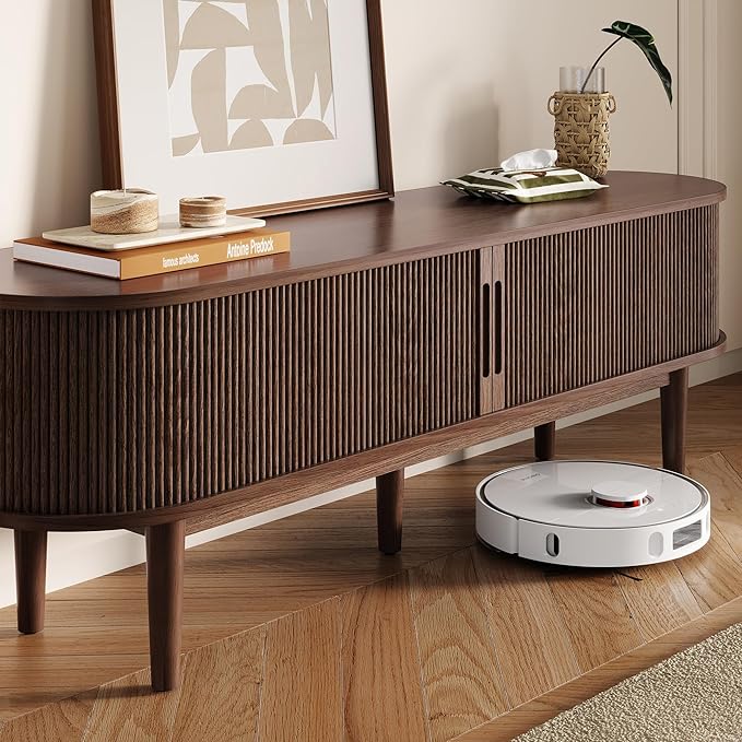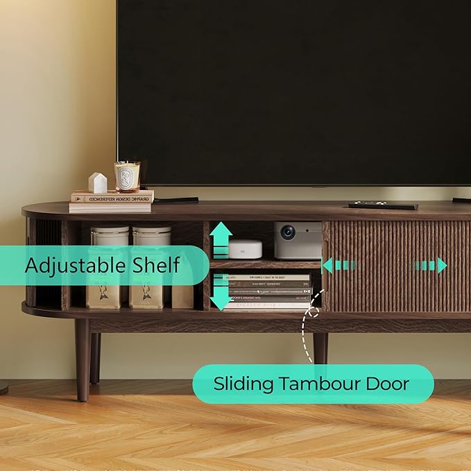 - Functional Entertainment Center – Designed with four separate storage compartments, this fluted TV stand offers versatile organization for everything from media players and board games to seasonal décor. The spacious open middle adjustable shelf is perfect for housing your media devices, gaming consoles, DVDs, While sliding doors cabinet provide easy access to keep your essentials neatly tucked away and your space clutter-free
