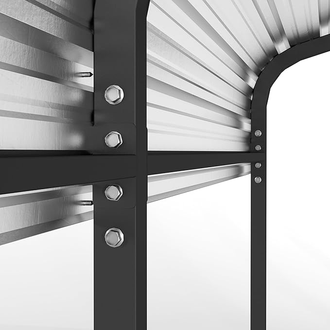 - Reinforced Base for Maximum Stability: Designed for enhanced durability, the reinforced base comes with additional anchor pegs, improving overall stability without compromising aesthetics. No matter the weather, this metal carport stays firmly in place, providing long-term reliability.