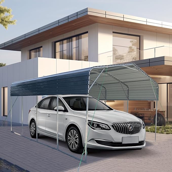 - This metal carport is incredibly versatile and can be transformed into a shaded outdoor lounge, a workspace, or additional storage for tools and equipment. It blends seamlessly into any outdoor setting.