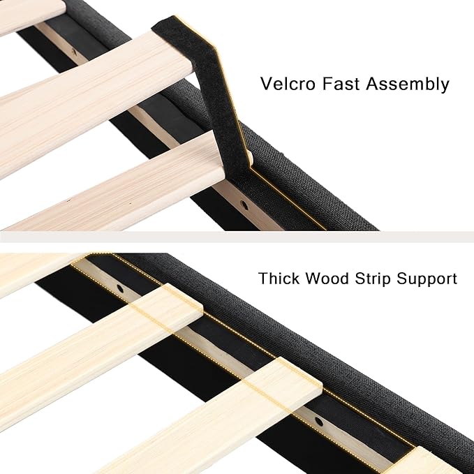 - Quick Assembly: Equipped with complete installation tools and convenient Velcro on wood slat to complete heavy duty bed assembly in just 30 minutes, enjoying a comfortable bedroom life easily