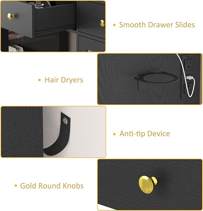 - 【INSTALL & AFTER-SALES】Vanity desk with charging stationcomes with detailed instructions, all required components have assembly number labels and making the process efficient and easy to assemble to prevent assembly issues. Professional online customer service team is available for post-purchase assistance. If you have any questions, please contact us directly and we will solve the problem and replacements.