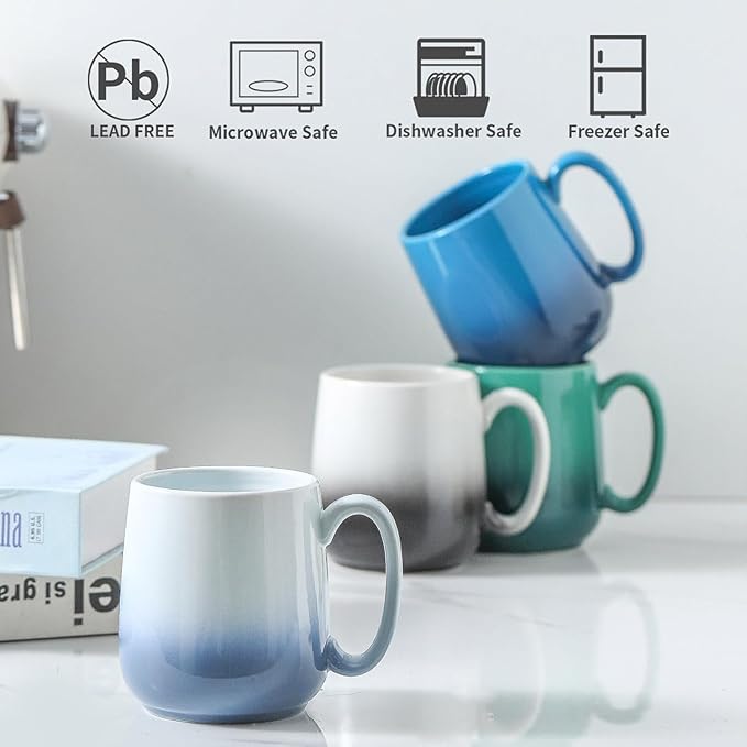 Hasense Ceramic Coffee Mugs Set of 4, 15 OZ Coffee Cups for Women/Men, Engagement Gifts, Microwavable & Dishwasher Safe, Gradient Multicolor