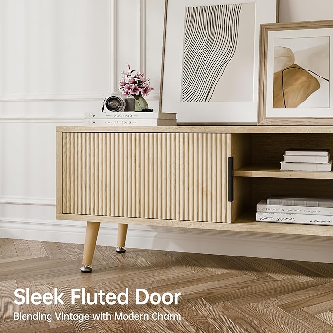 - 【Medieval-Style Modern TV Stand】 This media console table adds a touch of modern fashion to any home environment with its unique design elements—groove details, elegant curved contours, and natural wood grain, perfectly complementing and enhancing various decorative styles. Its simple yet elegant design seamlessly blends into living rooms, bedrooms, or offices.