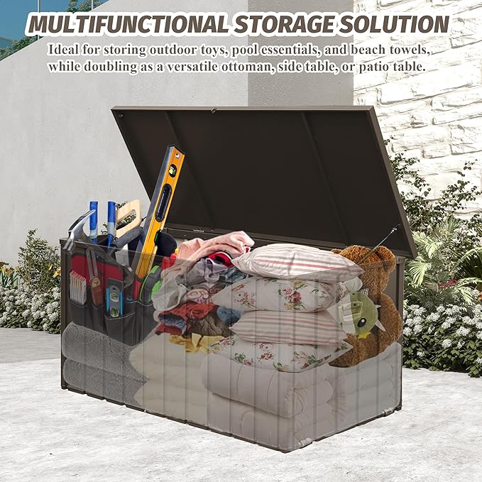 - 🌞【Strong and Durable】: Domi outdoor storage container is made with durable construction with galvanized steel reinforcement makes this outdoor deck box weather-resistant and easy to maintain. No worried about the warping, fading, peeling and discoloration.