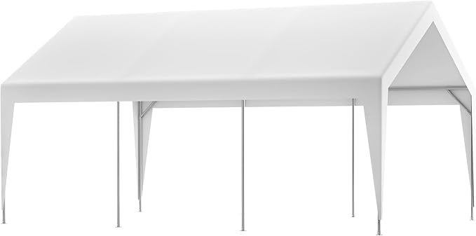 - 【Spacious 13x20 ft All-Purpose Garage】This heavy-duty carport provides 260 sq.ft. of sheltered space, ideal for storing cars, trucks, boats, trailers, or tools. The large footprint also makes it perfect as a backyard event tent or outdoor storage shelter