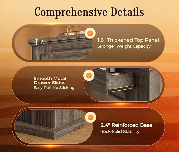 - 【Built Solid, Styled to Last】 With a 2.4" thick reinforced base and a sturdy 1.6" top panel made from premium particle board, this TV stand with drawers is as strong as it is beautiful. It handles heavy TVs with ease and stays rock-steady. We’ve included clearly labeled parts, easy-to-follow instructions, and tools included — so you can set it up more easily and start enjoying it sooner