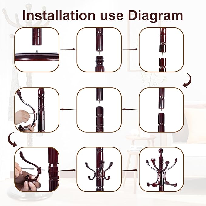 - EFFORTLESS AND QUICK ASSEMBLY: The coat rack comes together effortlessly in mere minutes. Simply tighten the frame poles and hooks with the threaded inserts, and your coat rack is ready to use. No complicated tools required. Save time and effort to enjoy a convenient lifestyle and effortlessly create a stylish home of your own.