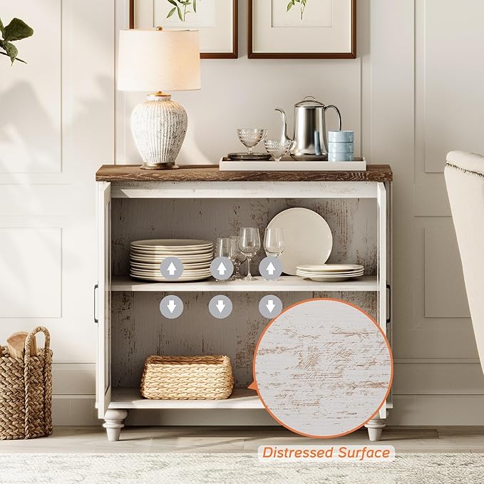 - 【Adjustable Shelf & Glass Door】Designed with height adjustable shelf, you could manage the storage space according to the item size. It maximizes the available space of the room while providing functional storage. Additionally, the transparent tempered glass door of the vintage white tv stand make it easy for you to find items you need.