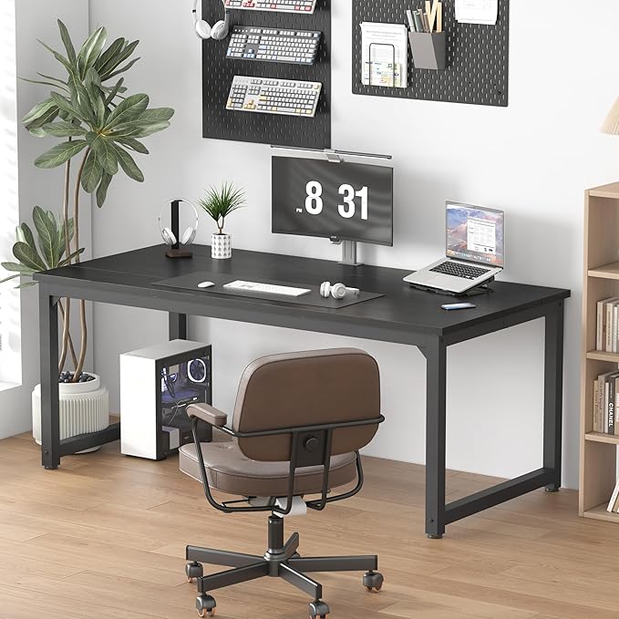 - 【Premium Stability & Large Legroom】 Thick 1"" desktop and reinforced 1.6×0.8"" metal frame provide superior sturdiness for gaming, remote work, or study. The computer desk offers extra-large legroom (up to 30.7"") and holds multiple monitors, perfect as a 70-inch office desk or gaming desk with storage."