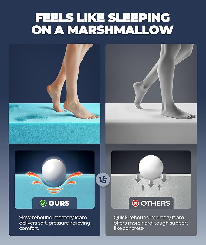 - LUXURY COMFORT, PATENTED DESIGN: Filled with 40% memory foam and 60% polyester in the exclusive 3-layer structure, this memory foam mattress topper can bring you a cloud-like hug without feeling like quicksand and cushion your pressure points to melt away stress. The well-stitched baffling keeps the fill evenly spread—no lumps, no clumps, just all-night comfort.