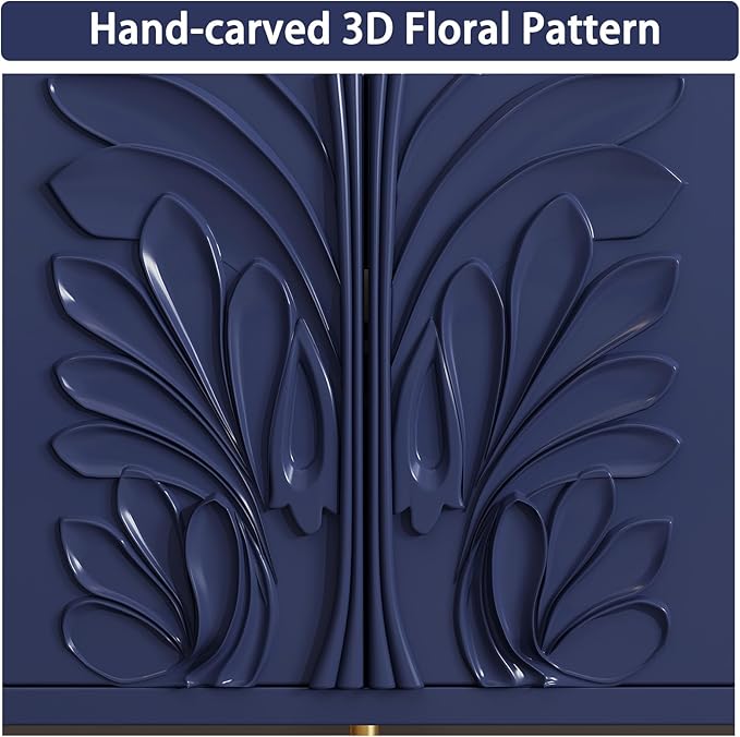 - 【Modern TV Stand】This wooden TV stand features a unique design with fluted glass double doors and hand-carved 3D floral patterns, giving it a distinctive and modern look. Each 3D floral motif is meticulously hand-carved by master craftsmen, brings an eye-catching feel to your living room, bedroom or dining room.