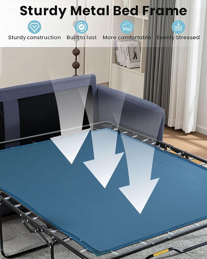 - Durable Solid Wood & Steel Frame – Built with a sturdy solid wood and steel frame, this queen sleeper sofa supports up to 400 lbs, ensuring long-lasting durability for daily use and overnight guests.