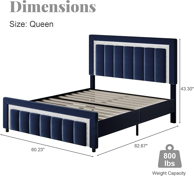 - Space & Comfy Queen Platform Bed: Experience luxurious comfort with upholstered platform bed. Wrapped in high-grade velvet, bed frame queen features a convenient for easy entry and exit, no need box spring.
