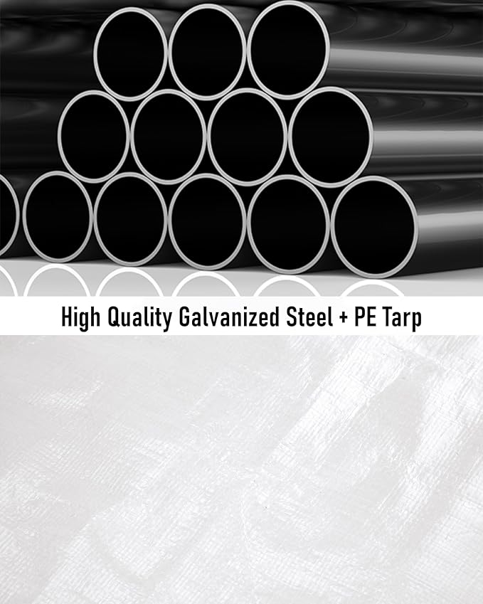 - Durable Metal Framework for Your Carport:Built to last with reinforced 21 Ga. and 18 Ga. galvanized steel poles, this carport canopy is coated in anti-rust powder for enhanced durability. The sturdy garage kit tent structure ensures long-term protection against harsh weather, making it a reliable car port solution for years to come.