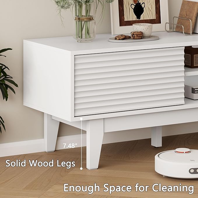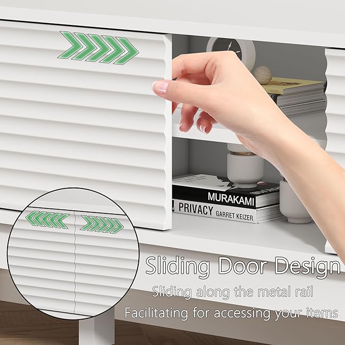 - 【Chic Appearance】The unique wave-like fluted doors match the natural surface, this TV stand with storage blend of midcentury modern and boho that adds a cozy stylish touch to your space. Whether you are in a dorm room, apartment or house, this TV cabinet can add novelties and charm to your house and make your home feel more like home