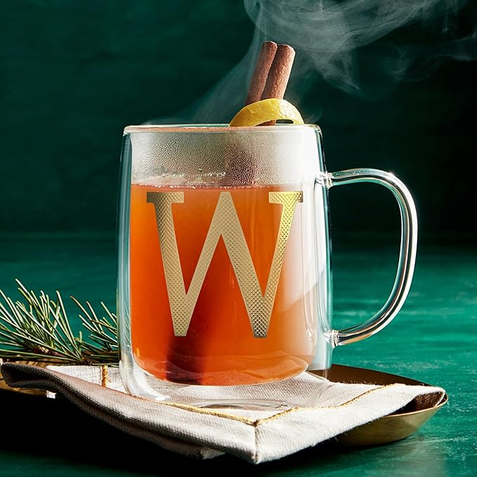 COLLECTIVE HOME - Double Walled Glass Coffee Mugs, Insulated Coffee Mug with Handle, Personalized Gifts for Women, Men, Christmas, 14 oz Monogram Cups (W)