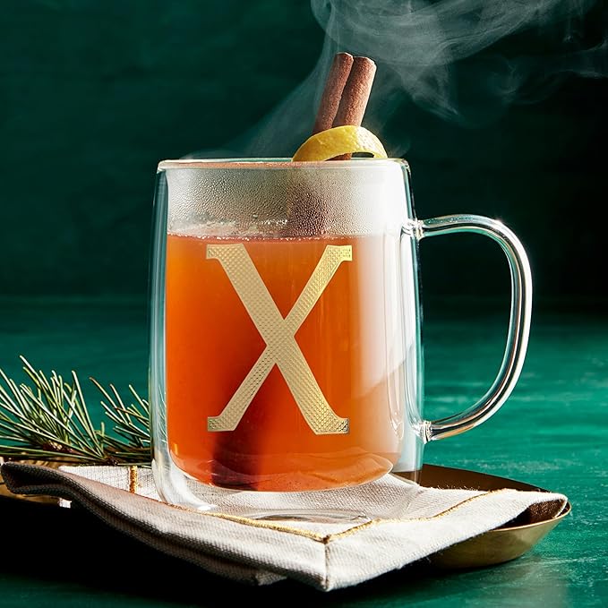 COLLECTIVE HOME - Double Walled Glass Coffee Mugs, Insulated Coffee Mug with Handle, Personalized Gifts for Women, Men, Christmas, 14 oz Monogram Cups (X)