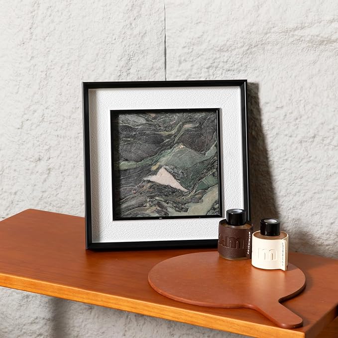 Natural Marble Decorative Wall Art Home Decor for Bedroom Hand Made Abstract Lithographic Painting Living Room Aesthetic for Classroom Farmhouse Heavy Texture Picture Frames 10x10 inch Rural Green