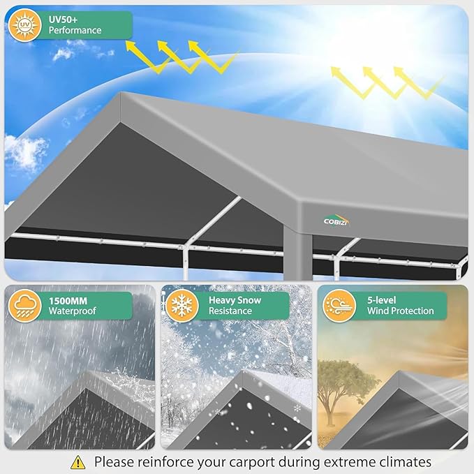 - 【Easy Assembly】Our heavy duty car canopy is designed with convenience in mind, featuring clear instructions and all the necessary hardware. Each part is clearly numbered, and our detailed manual guides you through a quick and easy assembly. This makes installation a breeze for anyone, saving you both time and effort.