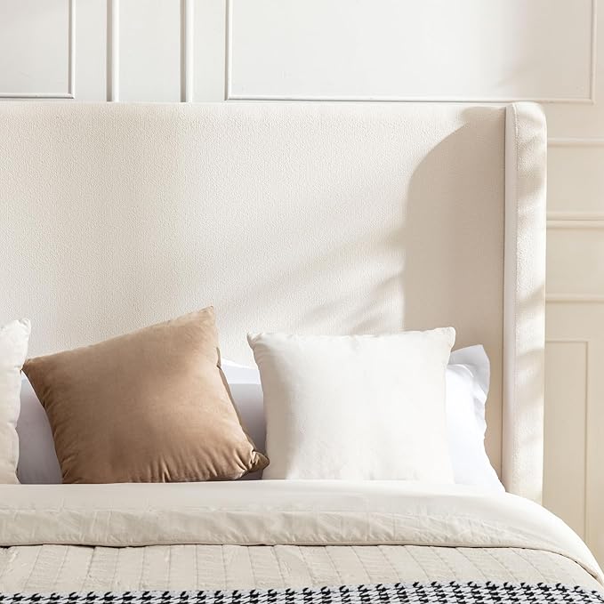 54" Tall Headboard Bed Frame with Boucle Upholstery, High Wingback Platform Bed, Sturdy Metal Foundation and Solid Wood Feet (Ivory, King (U.S. Standard))