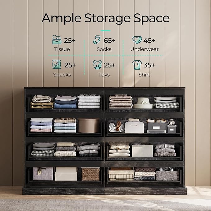 LINSY HOME 8 Drawer Dresser for Bedroom, 53" Wide Chest of Deep Drawers, Modern Farmhouse TV Stand Dressers with Storage, Large Drawer Organizer for Bedroom, Living Room, Handless Design, Black