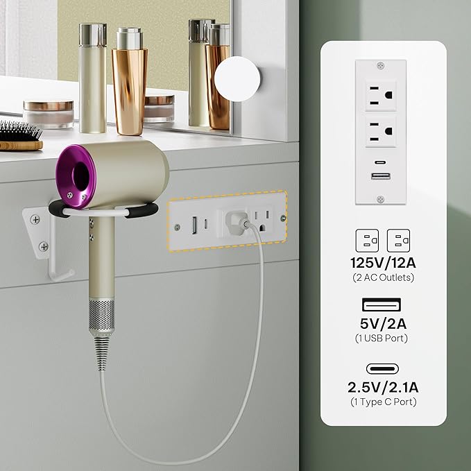 - Built-In Power Hub: Stay connected while you prep! This vanity desk features 2 AC outlets and 2 USB ports, great for powering your devices during beauty rituals. Effortlessly scroll through makeup tutorials as you style your hair