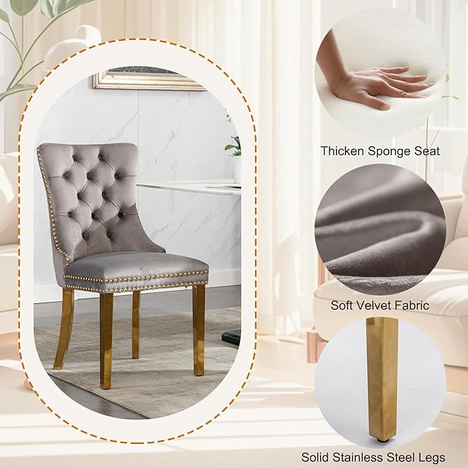 - Beautiful Comfy Dining Chair With Tufted Backrest: From Plenty decorative nailhead inset around cushion and back, to chic tall back with pull ringing design, not only make it looks noble and elegant but also give the whole dining chair a feeling of exquisite luxury. Ergonomic tufted high back provides day-long comfort without feeling back pains