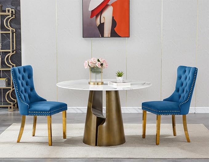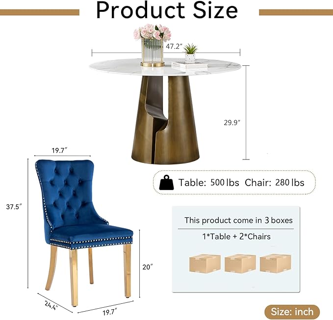- Easy Assembly: Stylish Luxury 3pcs faux marble top dining table and velvet chairs set with delicate look yet has a simple structure. This modern kitchen table set for 2 is super easy to assemble. All labeled pieces and tools are included