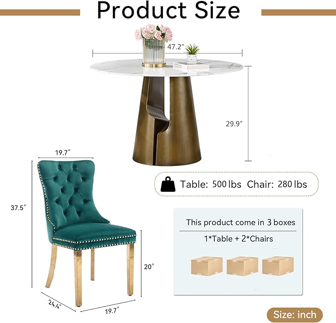 - Easy Assembly: Stylish Luxury 3pcs faux marble top dining table and velvet chairs set with delicate look yet has a simple structure. This modern kitchen table set for 2 is super easy to assemble. All labeled pieces and tools are included