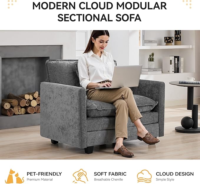 - Cloud-Like Comfort: This oversized armchair is crafted with dual-layer seat cushions, paired with backrest and armrest pillows, offer exceptional support for your back and waist. Thoughtfully engineered for all-day relaxation, each seat gently conforms to your body, effortlessly blending into any home space to become the ideal lounging spot.