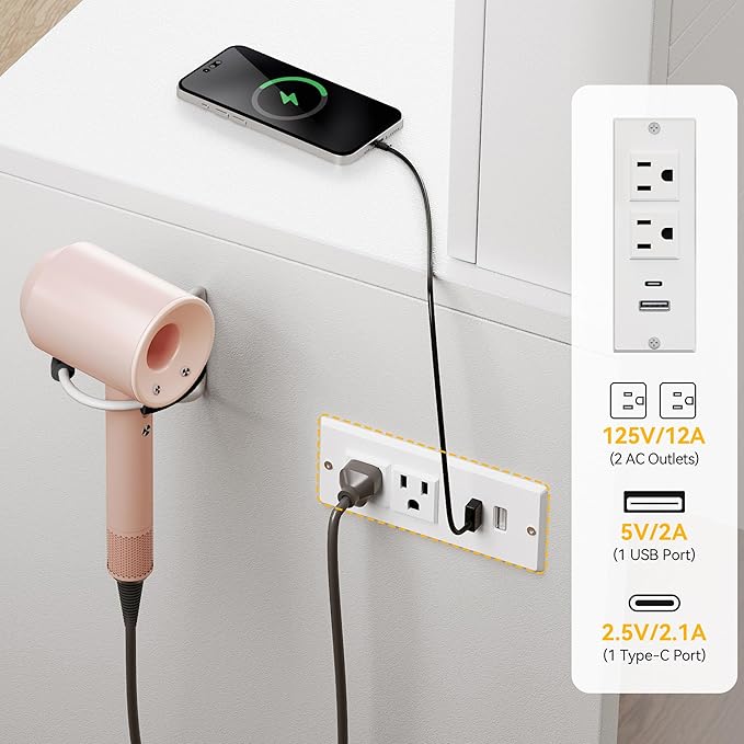 - Integrated Power for Seamless Styling: Stay powered up while you style-this dressing table includes 1 Type-C port, 1 USB port, and 2 AC outlets for charging devices and beauty tools. A built-in holder keeps your styling tools within reach and neatly stored