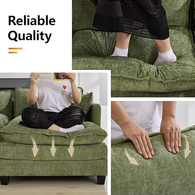 - Premium Materials: The lounge chair is upholstered in premium chenille fabric, It stands up to daily use, scratches, and stains, making it ideal for homes with children or pets. Its spacious design and 11inch thicked comfortable cushions offer a cozy and inviting atmosphere for all your gatherings.