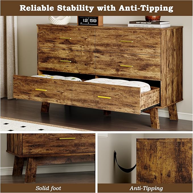 - Innovative Construction & Enhanced Stability: Crafted from premium P2 Engineering Wood, BORNOON bedroom dresser features an eye-catching X-shaped cross base with five legs—one of which is an adjustable center leg for improved balance. The built-in anti-tip mechanism not only boosts stability on uneven floors but also ensures long-lasting durability, providing safety for your home.