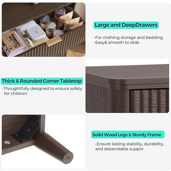 - Large Storage Capacity - Measuring 15.7“D X 58.3"W X 34.7"H, this fluted dresser offers ample room to neatly organize your clothing, accessories, and personal items, while the wide top surface provides the perfect space to showcase your favorite photos or décor