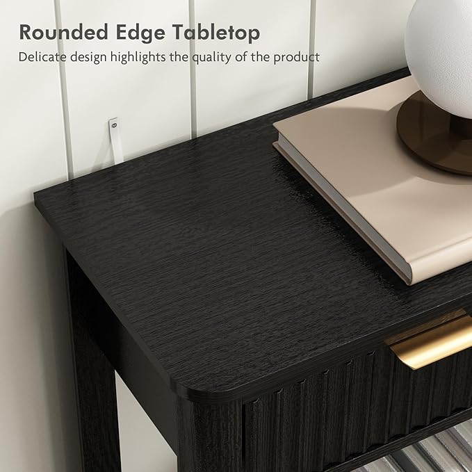 Fluted Console Table with Drawers, Modern 47.1" Entryway Table with Storage Shelf, Boho Narrow Skinny Behind Couch Wood Sofa Table for Living Room Hallway Entrance Foyer, Black