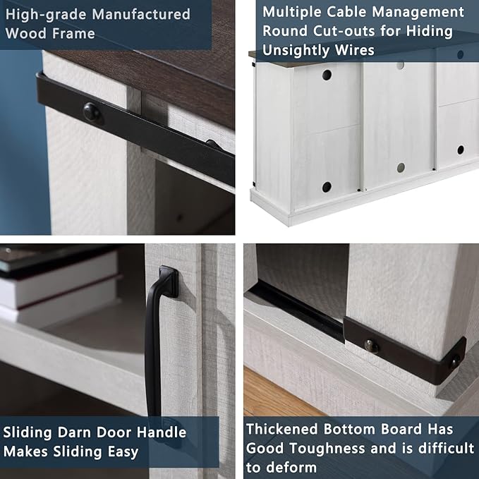 - Special Feature : Adjustable Shelf, Media Console Table, Sliding Barn Doors, Storage